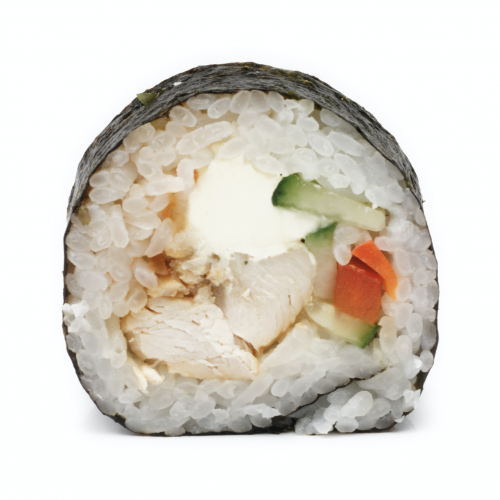 Freshly cooked Teriyaki Chicken, Cucumber, Red Capsicum, Cream Cheese and Sweet Chilli Sauce